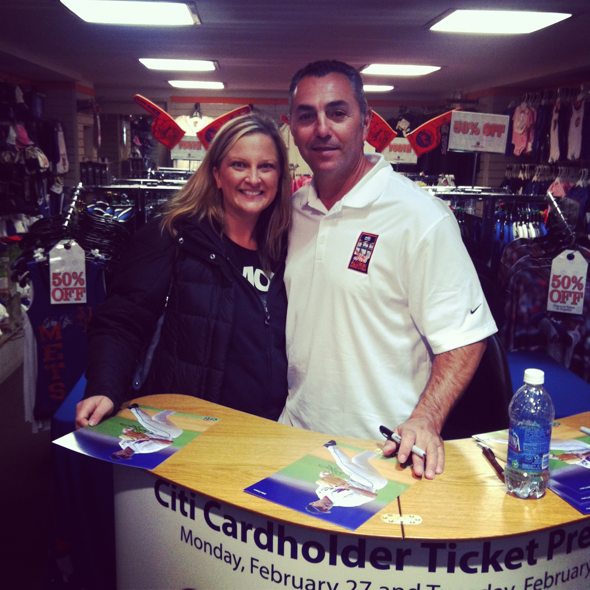 I totally had a brain cramp that Franco was visiting some stores today.  Again, one of those things that was unexpected.  I had gone in looking to buy something but instead I find the mascot and the guy who is being inducted in the Mets Hall of Fame.