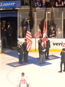 The 50 or so minutes we had to kill before the game went quickly, as before I knew it, John Amirante was out psyching up the crowd during his rousing rendition of the Star Spangled Banner.