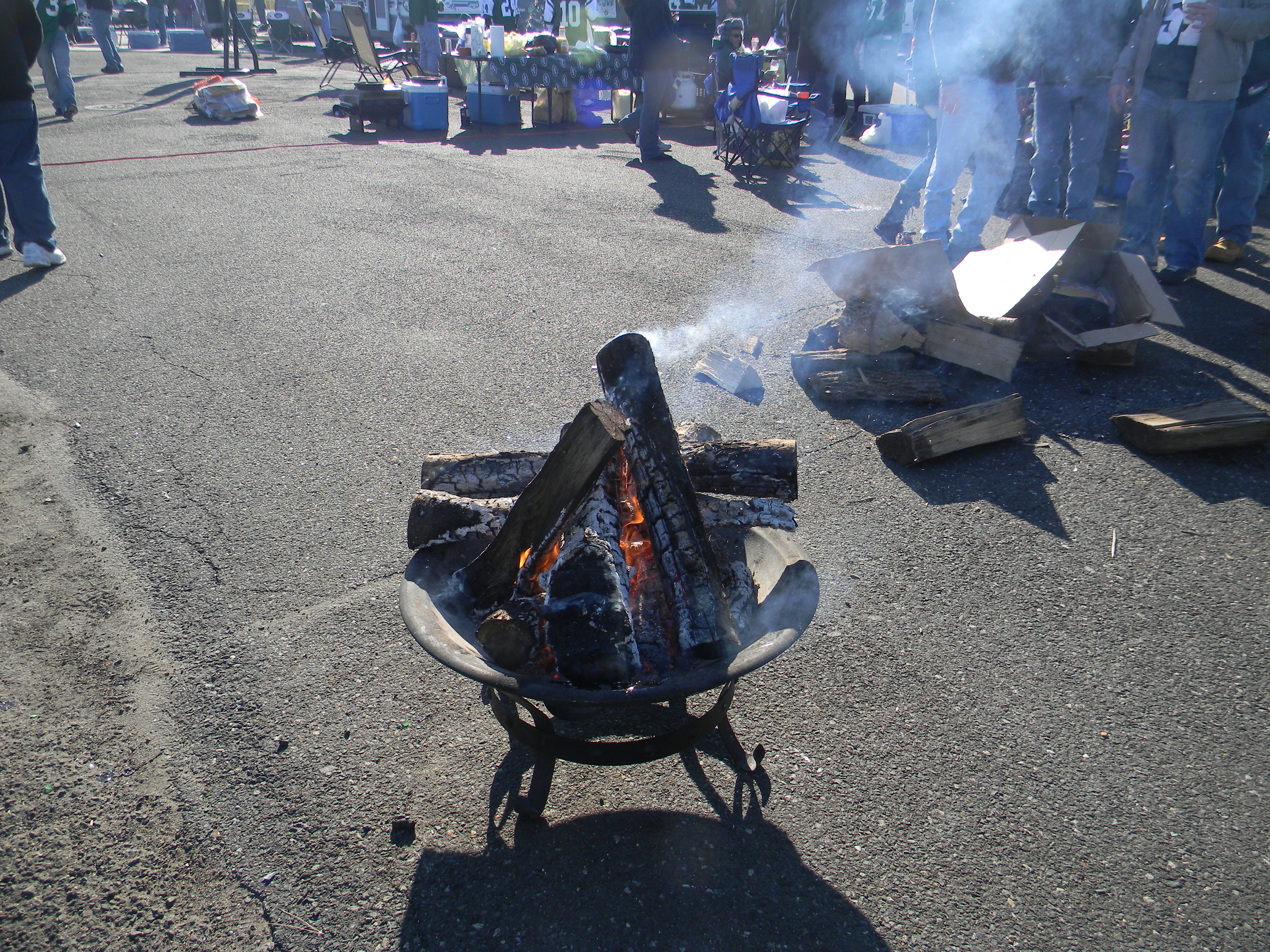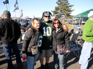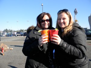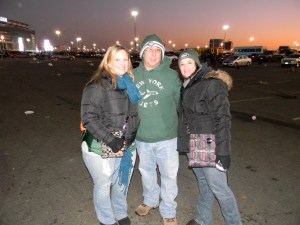 I went to the same tailgate I attended back in October, when I went to the game against the Dolphins. My friend Kevin is part of a tailgate group, where they basically have a communistic set up of beverages, snacks, real food, and then other wares, like chairs and wood-burning stoves. Kevin is married to another baseball chick I know, Sharon, and she came to celebrate our birthdays (since this was the birthday game). Sharon ended up going to the game, which wasn’t part of the original plan, but it ended up benefiting us for several reasons. One is that we love Sharon and she’s a lot of fun to hang out with…the other is that later on, we got to sit with Kevin and a few of his friends in the 200 level.