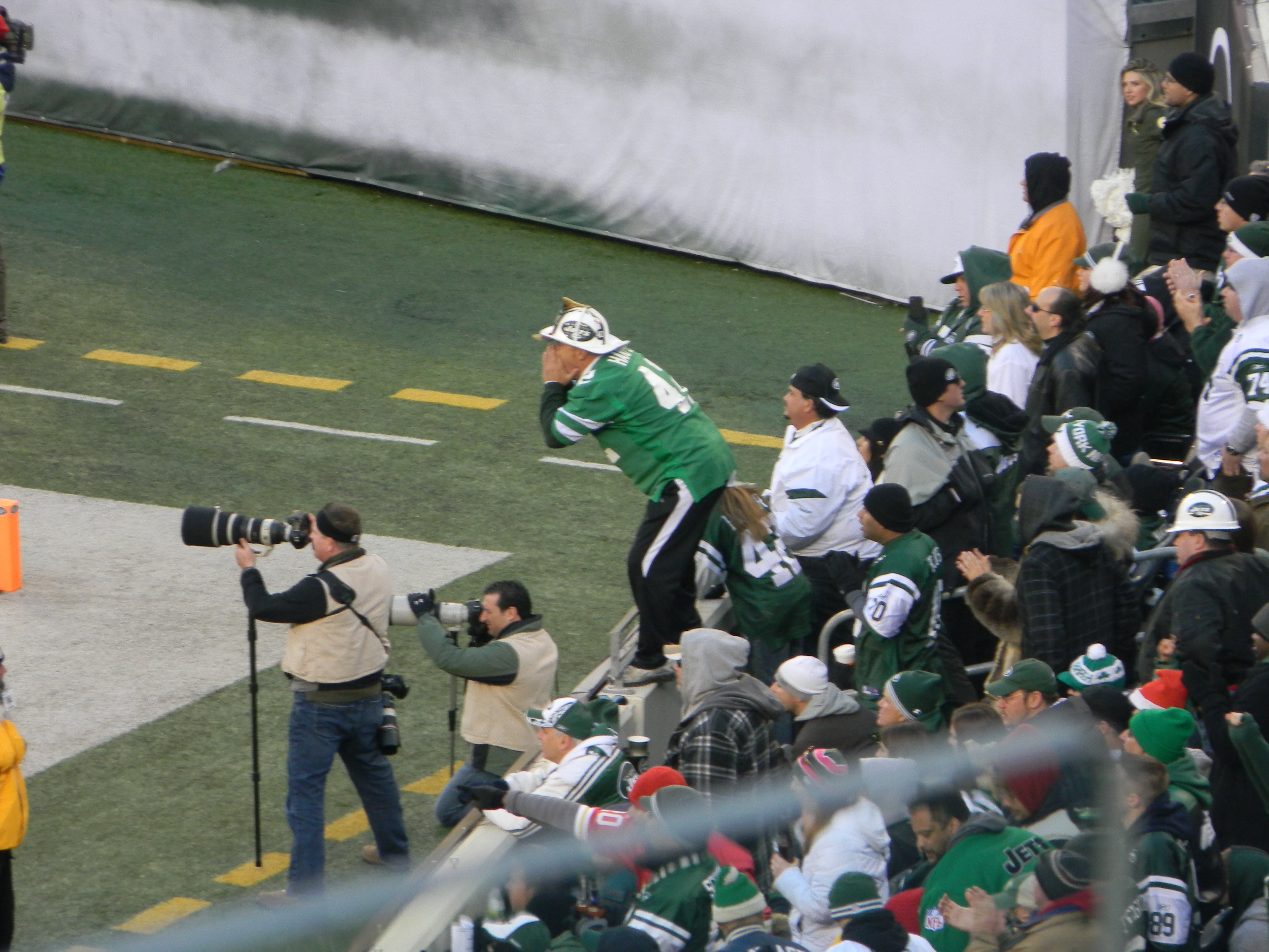 We had a better view of Fireman Ed, who basically has carte blanche to do anything at JetLife Stadium.