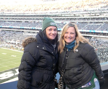 I wanted to get there earlier, after all there were huevos rancheros on the menu there, because two and a half hours does go by quickly. After all, times flies when you’re having fun. It came time to go into the stadium and root for the Jets. It was Dee’s first live football game, after all. And yes, I’m trying to set a record for the most “after alls,” in one paragraph.