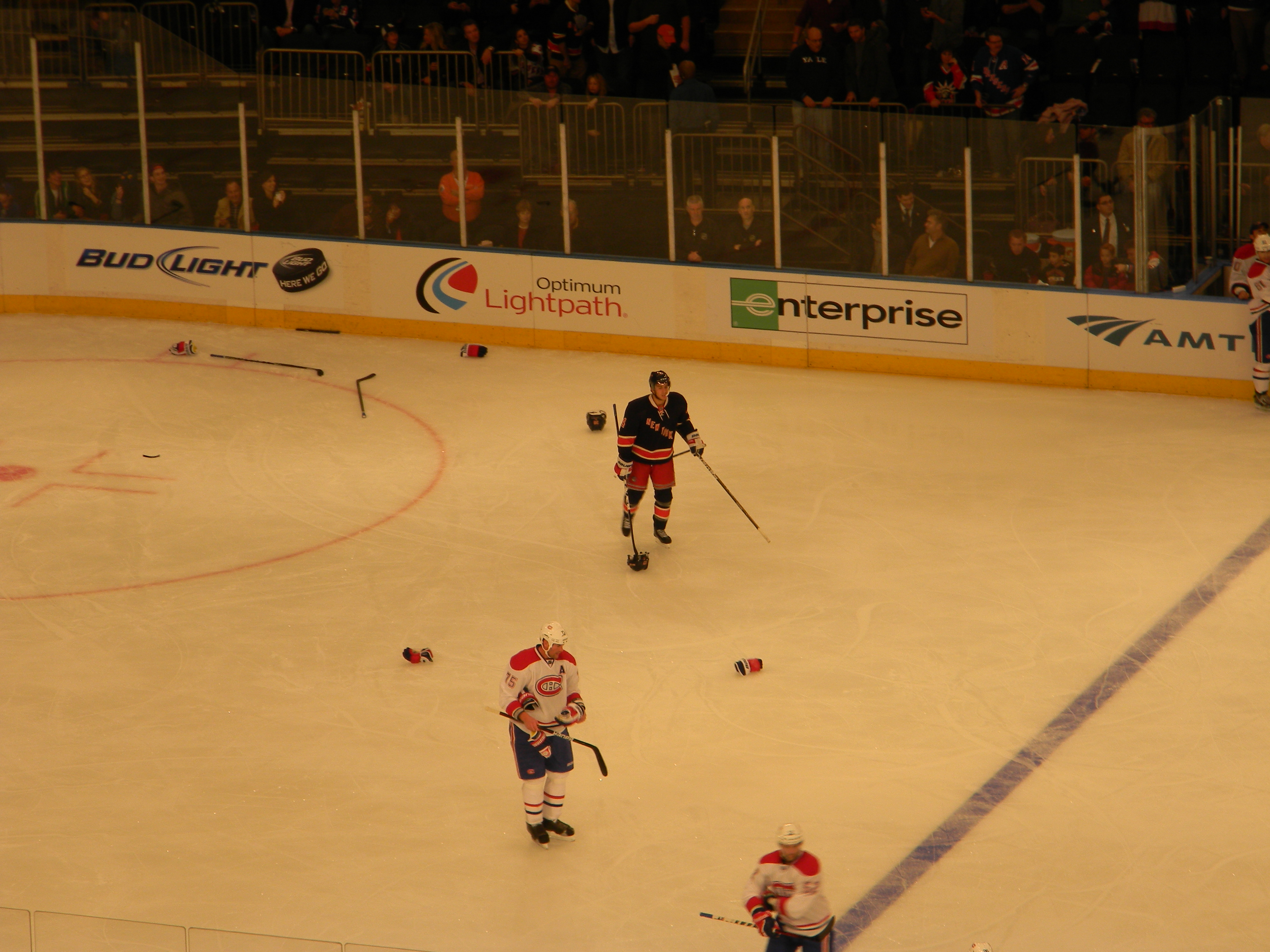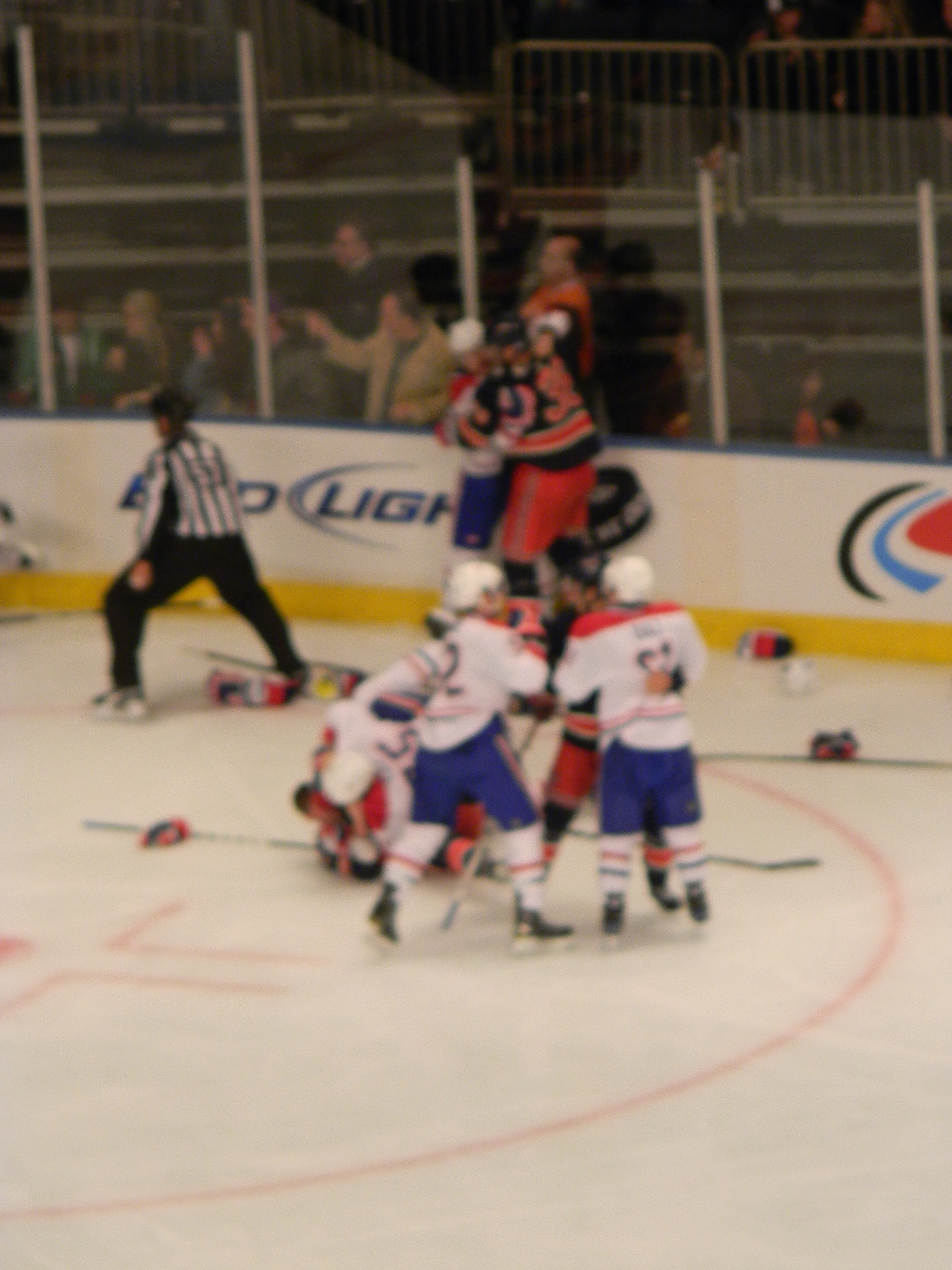 Not much to tell. We were still waiting to get to our seats when the first goal was scored by Michael Del Zotto. We were in our seats for the second goal, and it was fabulous. The Garden still can rock.